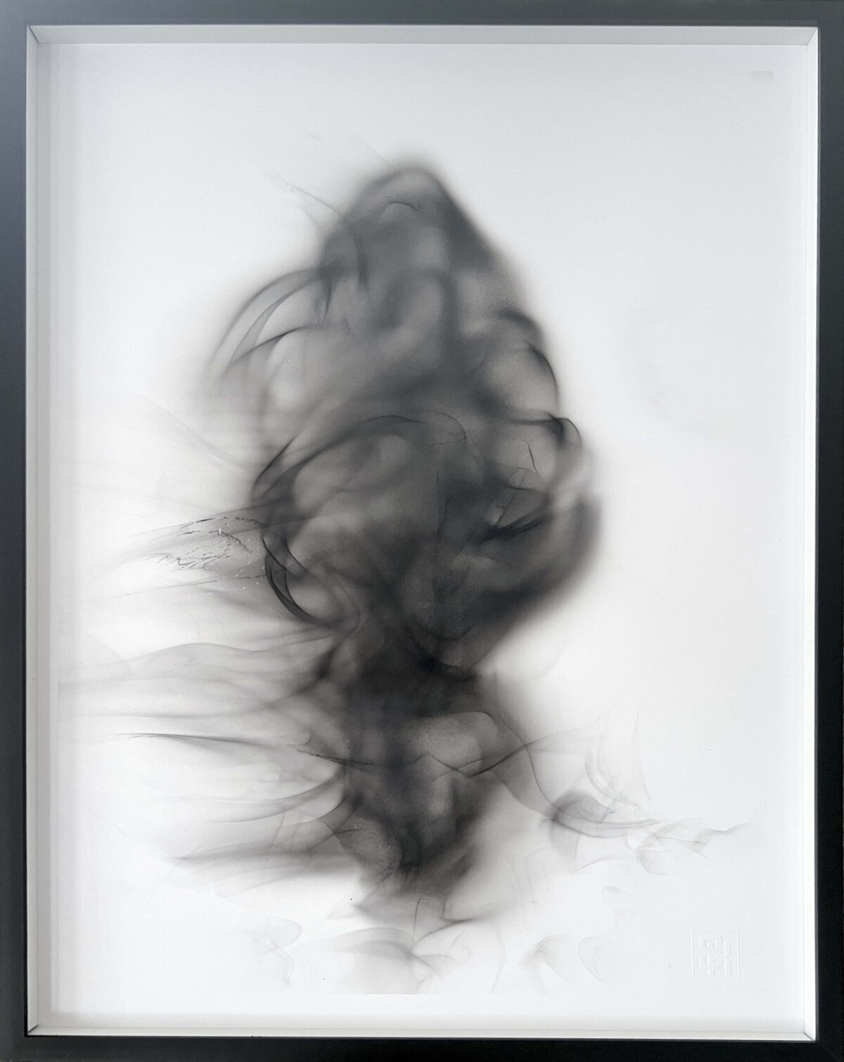 MOND 1 30x30cm ,Kampferruss auf Papier gerahmt, signiert 2024
